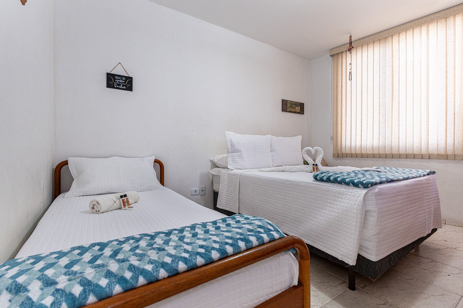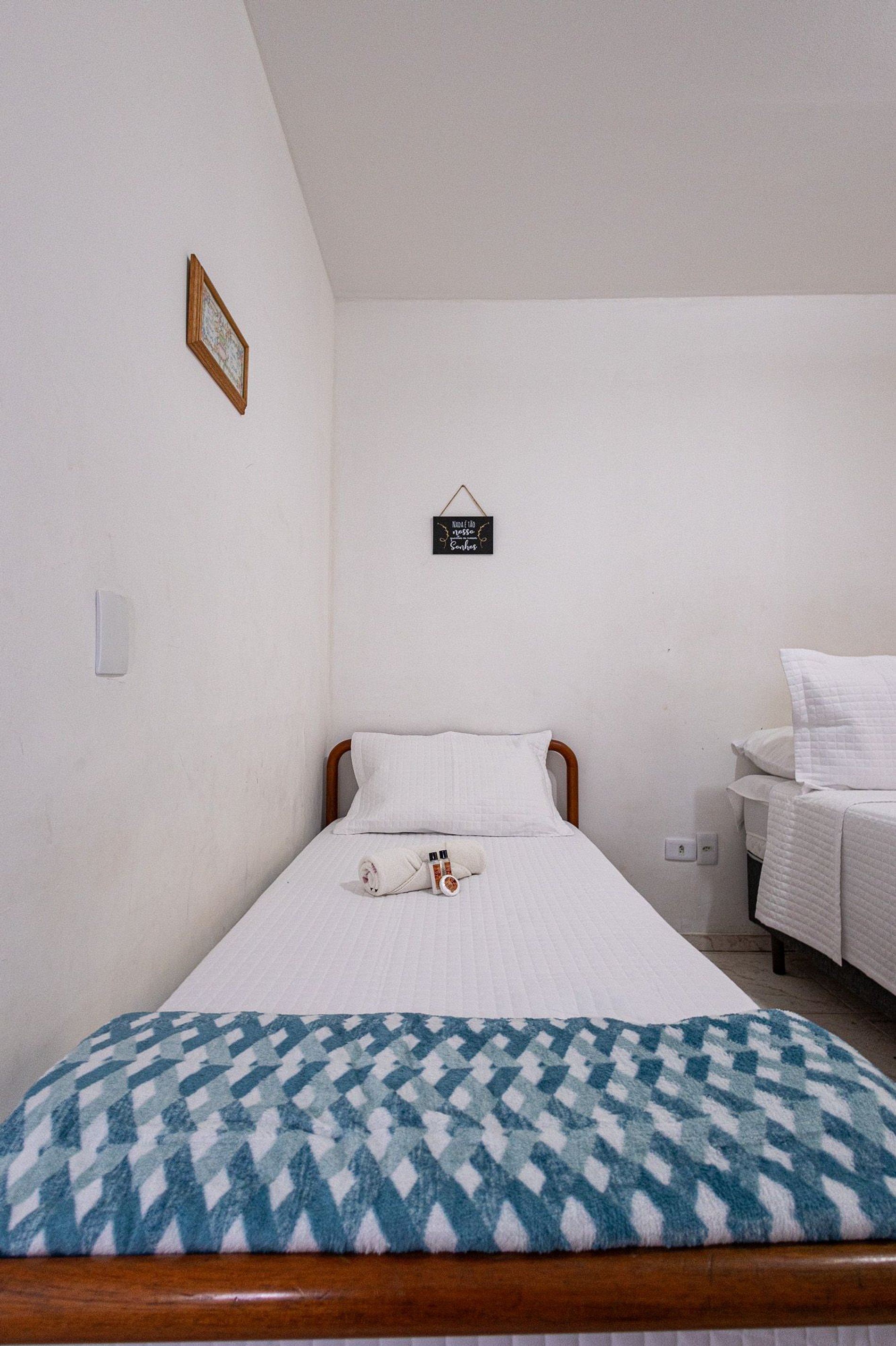 - Quarto equipado 1 cama de casal e uma bicama solteiro, armário, edredom / cobertor, protetor de colchão e guarda mala