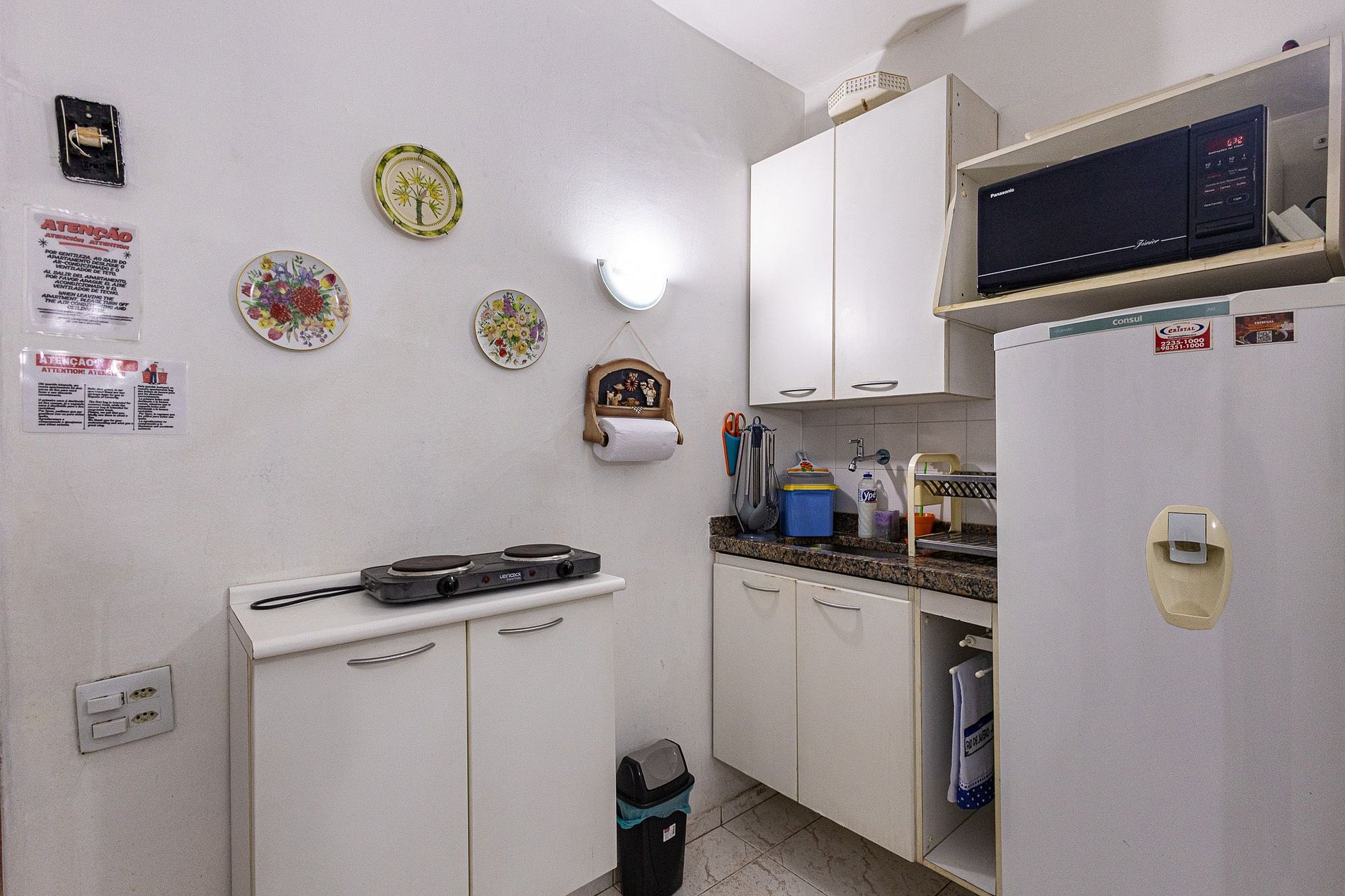 - A cozinha tem tudo que você precisa para preparar ótimas refeições, incluindo Fogão de 1 boca, geladeira, liquidificador, microondas, torradeira, cafeteira, sanduicheira.