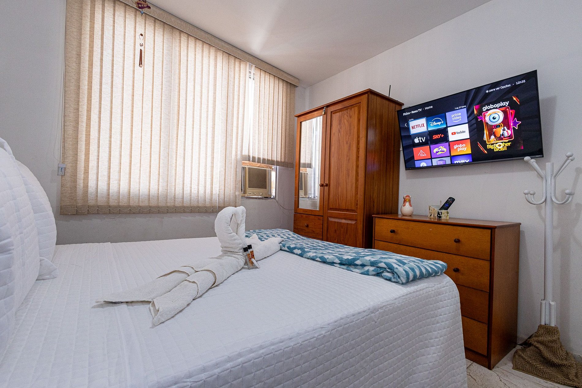 Experience the best location in Copacabana, Posto 4! Excellent apartment on Av. Nossa Senhora de Copacabana, with everything you need for a comfortable stay. Suite, Smart TV, air conditioning, stove, refrigerator, microwave, Wi-Fi, and much more. Your medium-sized pet is welcome! The bedroom has a double bed and the living room has a sofa bed. Don't wait, make your reservation now! Ensure a stylish stay.