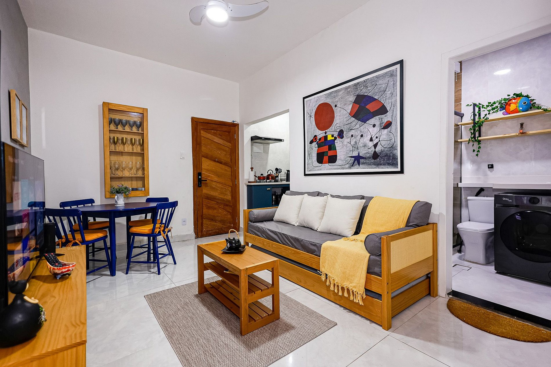 Apartamento na melhor localização de Copacabana, perto de estações de Metrô, fica na avenida N S de Copacabana a praticamente 1,5 quadra da praia. Apartamento com 01 quarto, ar condicionado (cama de casal) Varanda para armar rede e colchão extra (01 pessoas) Sala com sofá cama e TV de 50 polegadas (02 pessoas) e Tv Box. Mini cozinha com fogão/geladeira/microondas, liquidificador, e utensílios como pratos, panelas, frigideira utensílios (pratos..) Internet wifi liberada Agua quente no banheiro