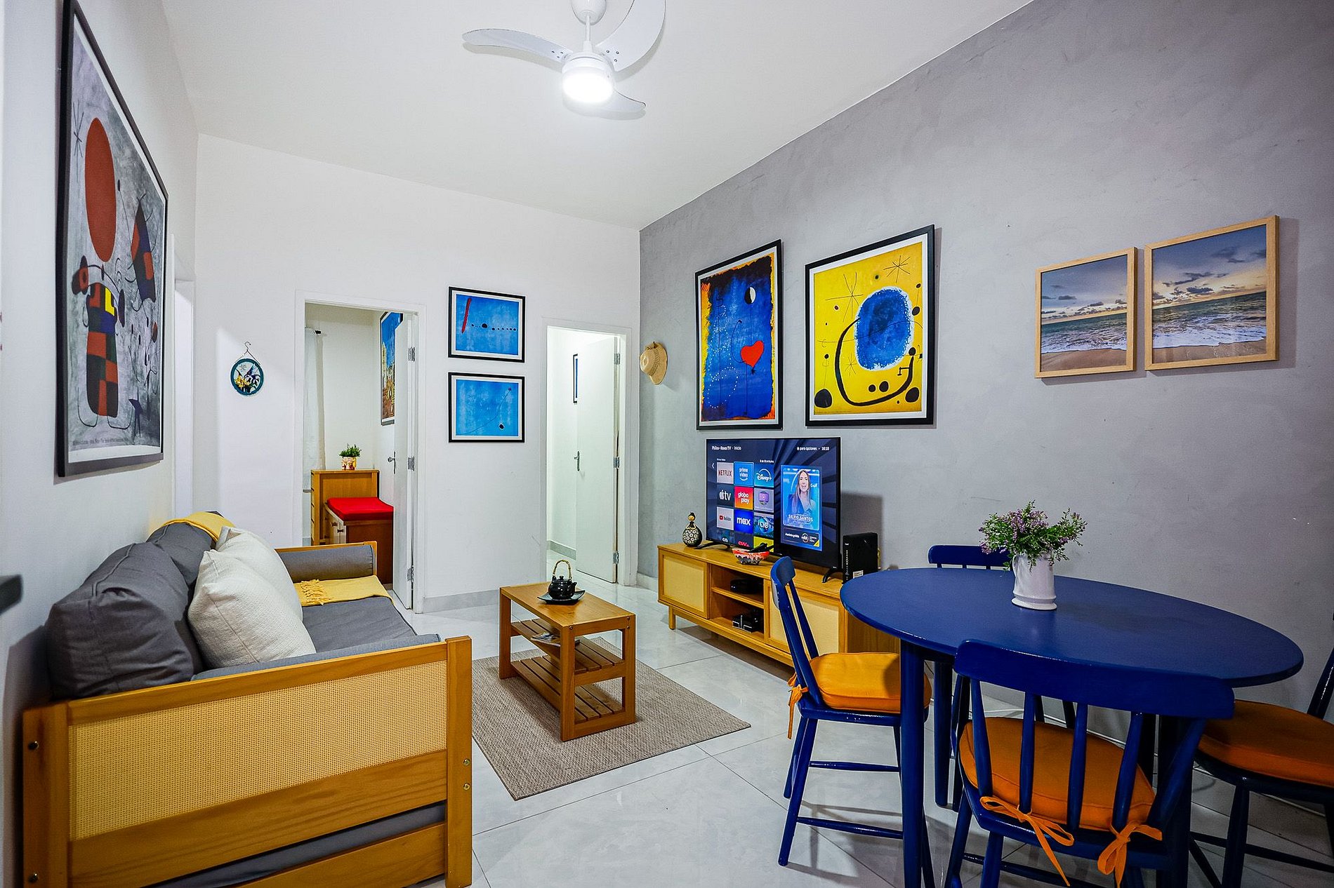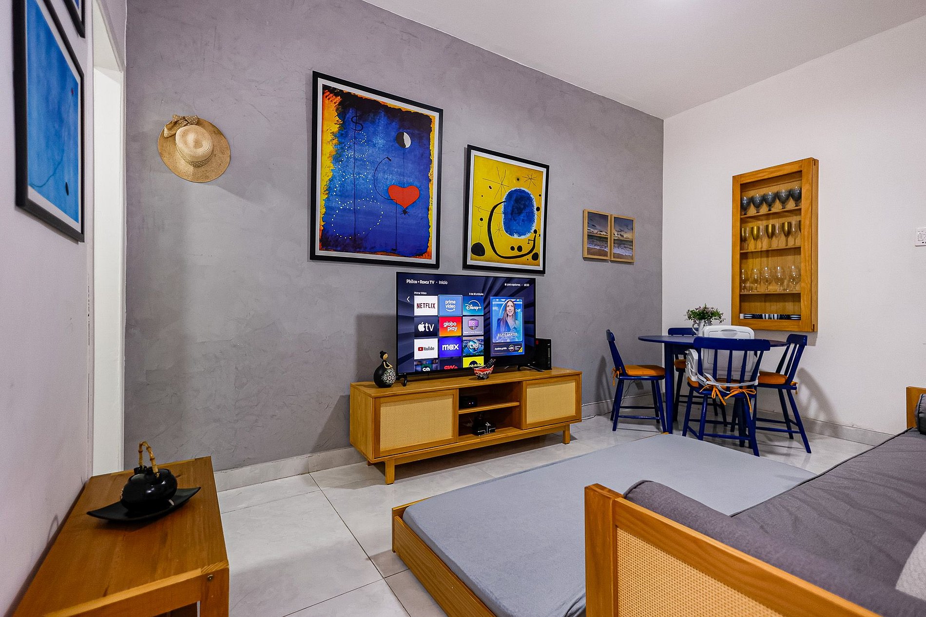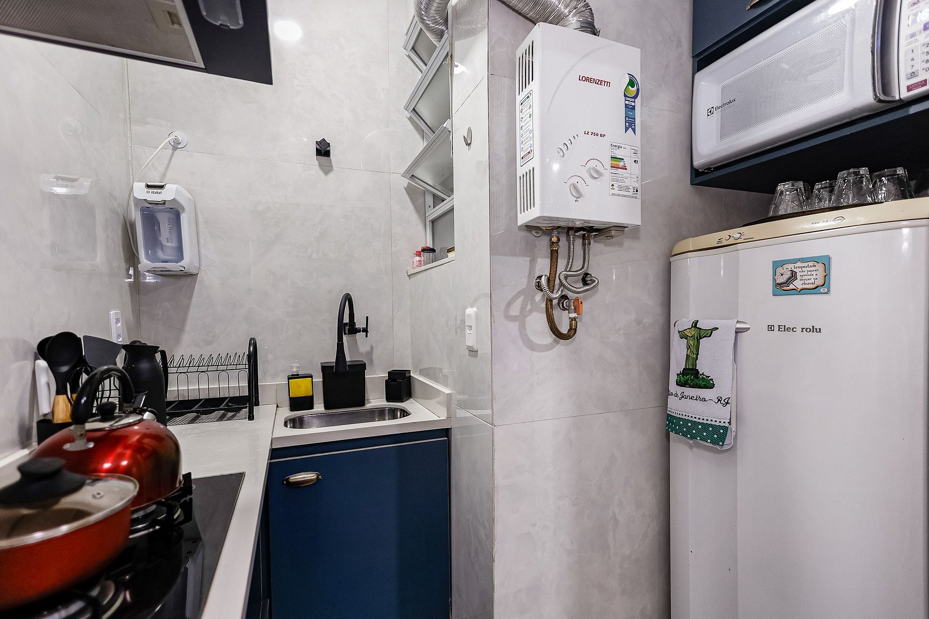 Apartamento na melhor localização de Copacabana, perto de estações de Metrô, fica na avenida N S de Copacabana a praticamente 1,5 quadra da praia. Apartamento com 01 quarto, ar condicionado (cama de casal) Varanda para armar rede e colchão extra (01 pessoas) Sala com sofá cama e TV de 50 polegadas (02 pessoas) e Tv Box. Mini cozinha com fogão/geladeira/microondas, liquidificador, e utensílios como pratos, panelas, frigideira utensílios (pratos..) Internet wifi liberada Agua quente no banheiro
