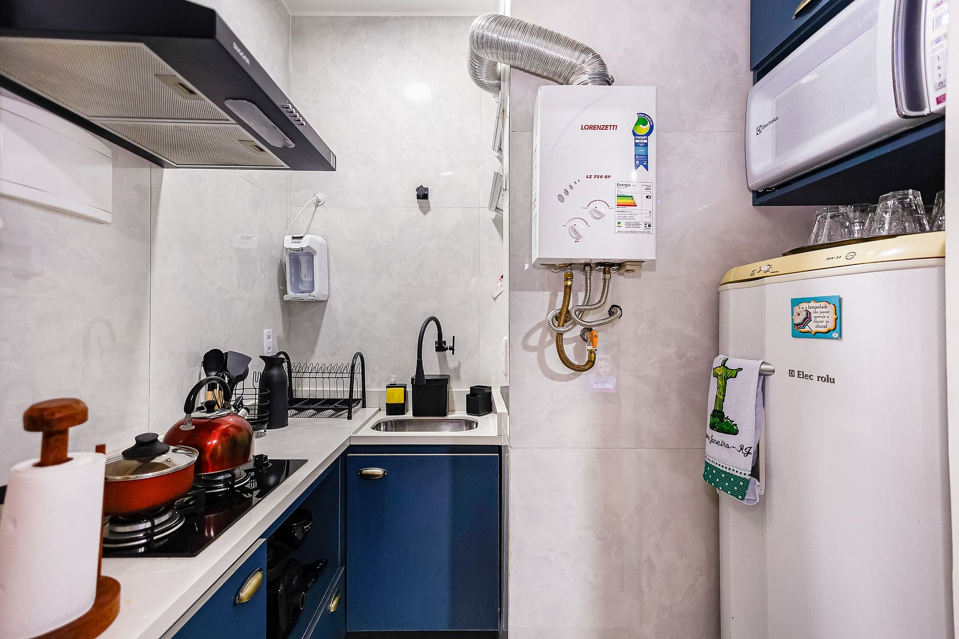 - A cozinha tem tudo que você precisa para preparar ótimas refeições, incluindo Fogão, geladeira, liquidificador, microondas, torradeira, cafeteira, sanduicheira.