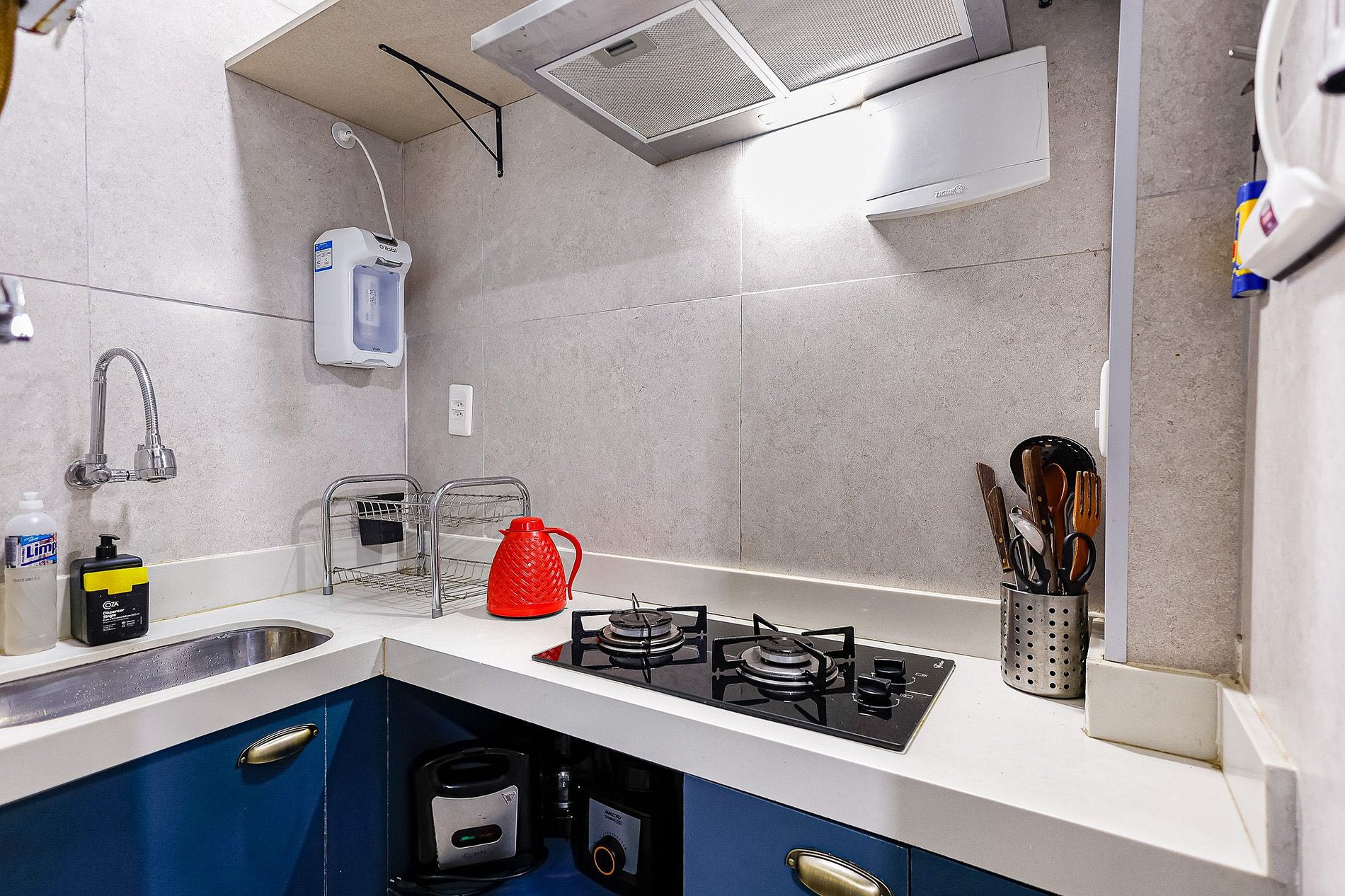- A cozinha tem tudo que você precisa para preparar ótimas refeições, incluindo Fogão, geladeira, liquidificador, microondas, torradeira, cafeteira, sanduicheira.