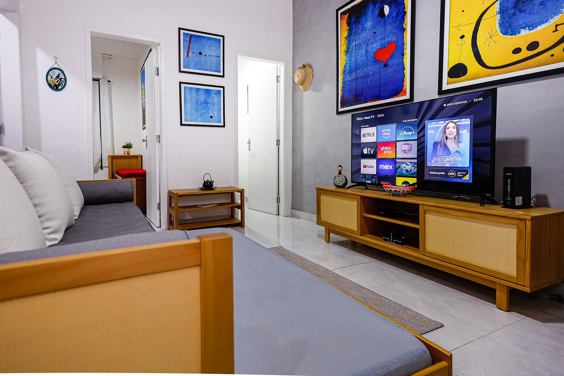 Apartamento na melhor localização de Copacabana, perto de estações de Metrô, fica na avenida N S de Copacabana a praticamente 1,5 quadra da praia. Apartamento com 01 quarto, ar condicionado (cama de casal) Varanda para armar rede e colchão extra (01 pessoas) Sala com sofá cama e TV de 50 polegadas (02 pessoas) e Tv Box. Mini cozinha com fogão/geladeira/microondas, liquidificador, e utensílios como pratos, panelas, frigideira utensílios (pratos..) Internet wifi liberada Agua quente no banheiro