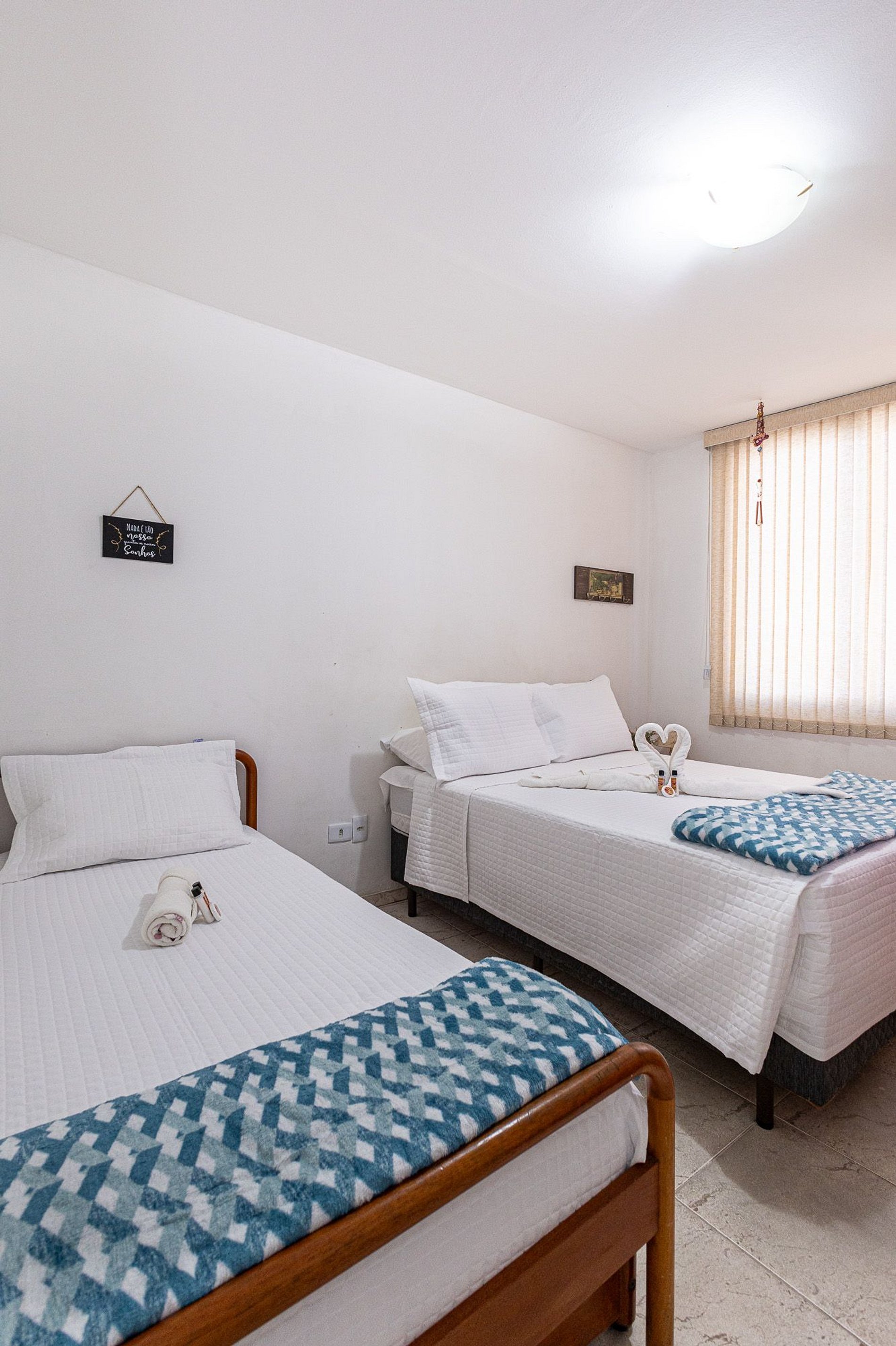 - Quarto equipado 1 cama de casal e uma bicama solteiro, armário, edredom / cobertor, protetor de colchão e guarda mala