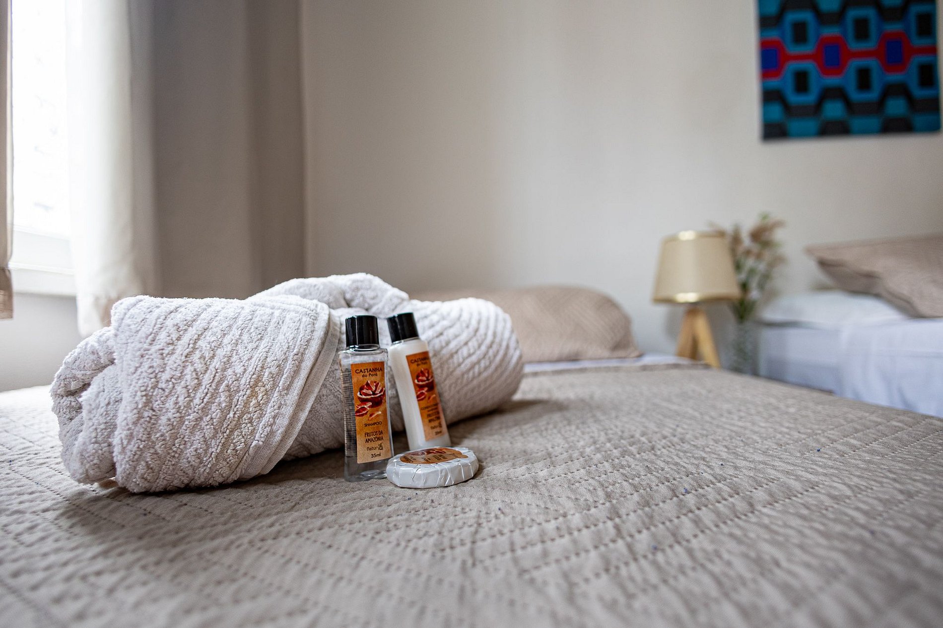 - Banheiro equipado com chuveiro quente, box de vidro/acrílico, secador de cabelo e produtos de higiene pessoal
